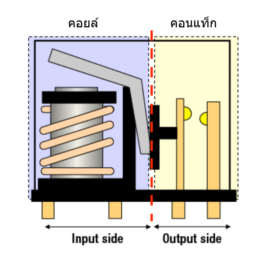 - เมื่อจ่ายไฟเข้าคอยล์ → เกิดแม่เหล็ก → ดึงคอนแทคให้เปลี่ยนสถานะ