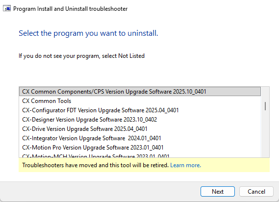 กระบวนการนี้จะลบทั้ง CX-One และ Sysmac Studio ซึ่งจำเป็นเนื่องจากซอฟต์แวร์ทั้งสองมีการใช้งานร่วมกัน