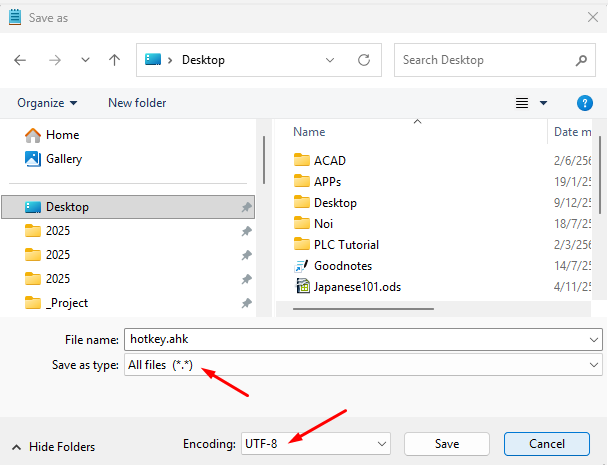 4. Save as เป็น hotkey.ahk